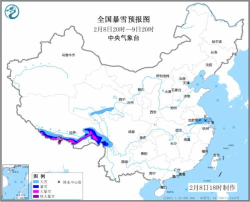 全國暴雪預(yù)報圖(2月8日20時至9日20時)