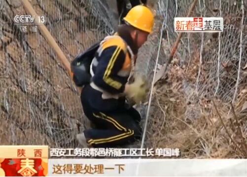 西安工務(wù)段漢中橋隧車間鄠邑橋隧工區(qū)工長 單國峰:這得要處理一下,滑落下來了,到了第一道網(wǎng),就要把它們?nèi)壳謇沓鋈ィ乐節(jié)L落到線路上去。找一個平一點的臺子,把它碼好、堆好,防止?jié)L落,有條件的情況下挖個坑給它掩埋了。