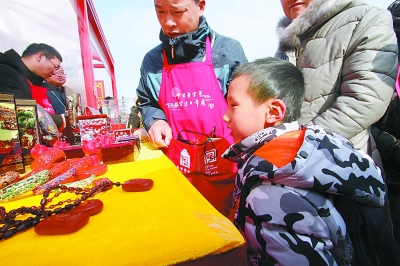 享受了一把精神“大餐”過后,如果也能獲得一些物質(zhì)上的收獲,那就再完美不過了。在慈寧宮花園、慈寧門外廣場,“中華老字號故宮過大年”熱鬧非凡,來自山東、北京、天津、山西等10個(gè)省市以及5家非物質(zhì)文化遺產(chǎn)傳承人,共計(jì)150家單位參加此次活動。