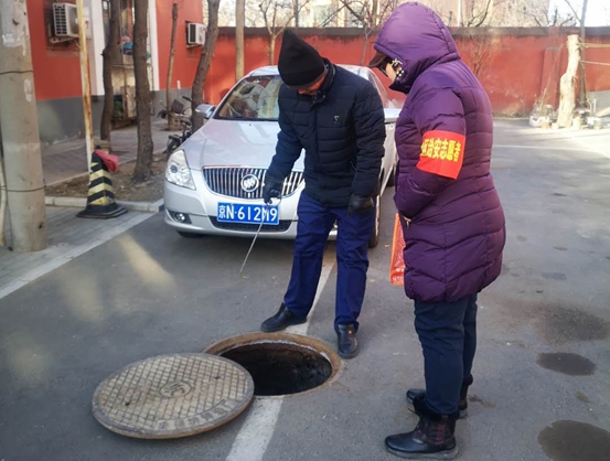 社工在檢查社區(qū)污水井 新華網(wǎng) 安雪晴攝