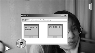 打開(kāi)《自我性賴》,通過(guò)開(kāi)始界面選擇開(kāi)始新游戲,可選擇兩個(gè)劇本,分別是“過(guò)早發(fā)生性行為”和“性病”,在過(guò)早發(fā)生性行為這個(gè)劇本中,一男一女兩個(gè)高中生坐在沙發(fā)上打游戲,沒(méi)注意時(shí)間已經(jīng)晚了,男生便提出希望女生在家過(guò)夜,玩家隨后需要為女生做出選擇,要么選擇“不行,不管怎么樣都要回家”,要么選擇“好吧,那就住一晚”……游戲會(huì)引導(dǎo)學(xué)生進(jìn)行正確的選擇。