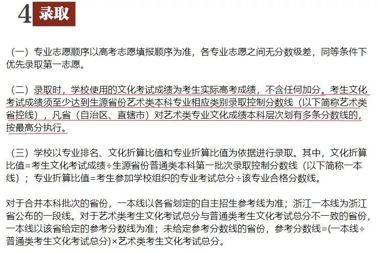 錄取時,文化課成績是門檻。依據(jù)錄取原則,專業(yè)考試合格的考生,文化課成績達到當?shù)厮囆g類本科錄取最低控制分數(shù)線后,按專業(yè)成績從高到低排序,擇優(yōu)錄取。