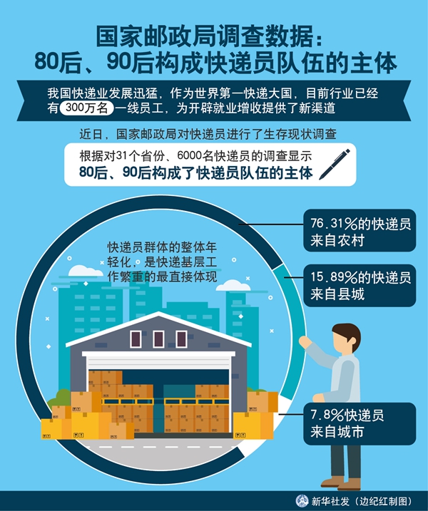 近日,國家郵政局對快遞員進(jìn)行了生存現(xiàn)狀調(diào)查,根據(jù)對31個(gè)省份、6000名快遞員的調(diào)查顯示,80后、90后構(gòu)成了快遞員隊(duì)伍的主體??爝f員群體的整體年輕化,是快遞基層工作繁重的最直接體現(xiàn)。76.31%的快遞員來自農(nóng)村,15.89%的快遞員來自縣城,僅有7.8%來自城市。
