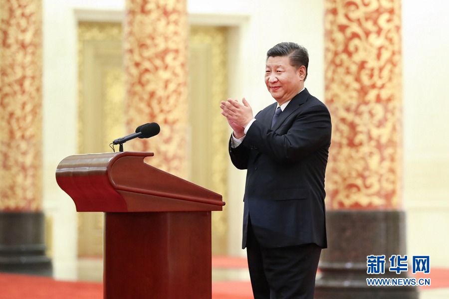 2月20日,黨和國家領(lǐng)導(dǎo)人習(xí)近平、李克強(qiáng)、栗戰(zhàn)書、汪洋、王滬寧、趙樂際、韓正等在北京人民大會堂會見探月工程嫦娥四號任務(wù)參研參試人員代表。這是習(xí)近平發(fā)表重要講話。 新華社記者鞠鵬攝