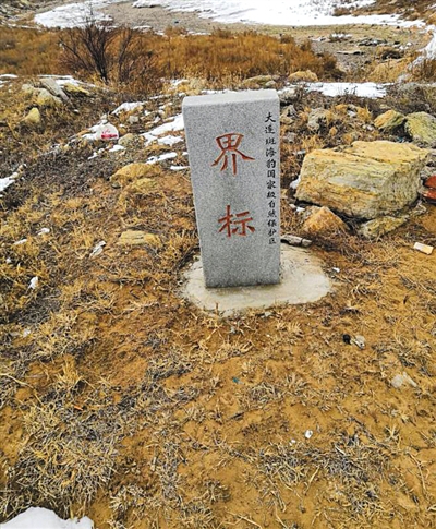 長興島上的大連斑海豹國家級自然保護區(qū)界碑。受訪者供圖