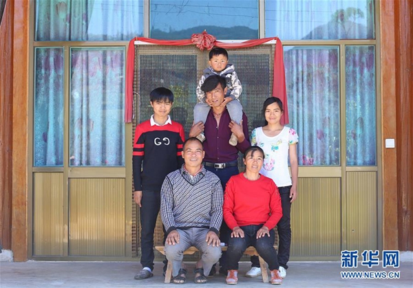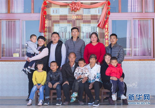 云南省施甸縣興華村村民楊德茂(前排左三)一家的“全家?!保?月7日攝)。新華社發(fā)(楊董清 攝)