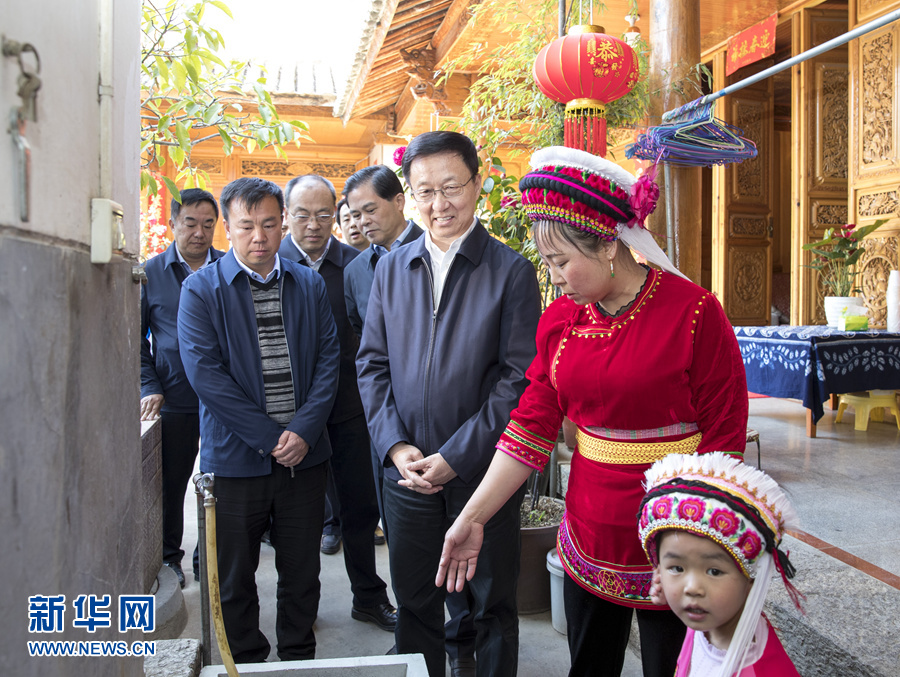這是2月25日,韓正在大理白族自治州大理市喜洲鎮(zhèn)美壩村村民家中詢問生活污水收集情況。新華社記者王曄攝
