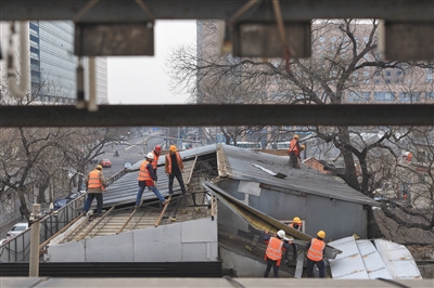 2018年3月23日,新文化街,工作人員在拆除一違章建筑。資料圖片 新京報記者 王嘉寧 攝