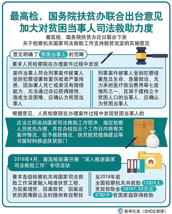 圖表:最高檢、國務(wù)院扶貧辦聯(lián)合出臺意見 加大對貧困當事人司法救助力度 新華社發(fā) 邊紀紅 制圖