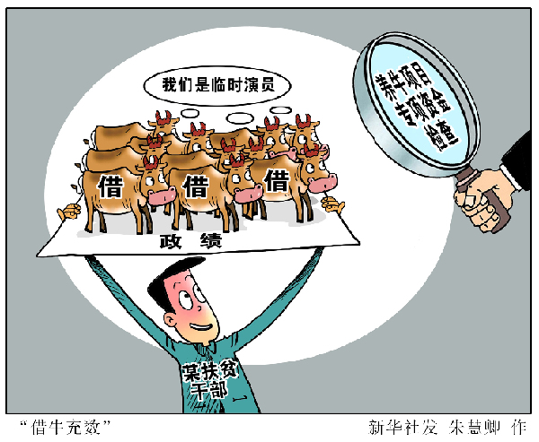 為應(yīng)對(duì)國(guó)務(wù)院扶貧辦養(yǎng)牛項(xiàng)目專項(xiàng)資金檢查,居然想出臨時(shí)借用百余頭牛放入牛圈,以營(yíng)造養(yǎng)牛項(xiàng)目“紅火”的主意。吉林省紀(jì)委近日通報(bào)一起借牛假冒政績(jī)的典型問(wèn)題,相關(guān)責(zé)任人受到嚴(yán)肅查處問(wèn)責(zé)?!敖枧3鋽?shù)”事件敲響警鐘:脫貧攻堅(jiān)越到最后時(shí)刻越要響鼓重錘,決不能搞急功近利、虛假政績(jī)的東西。