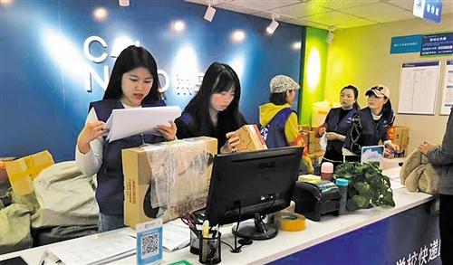 左圖 四川外國語大學綜合物流服務中心內(nèi),工作人員精準記錄著快遞末端的流通信息。