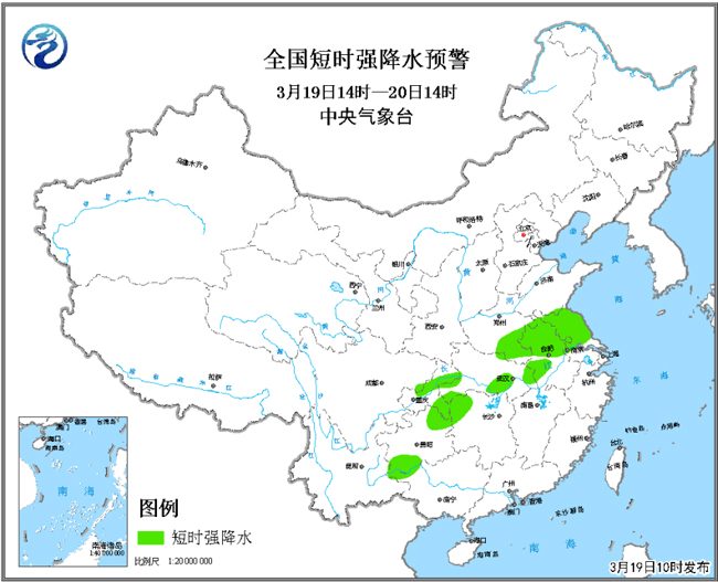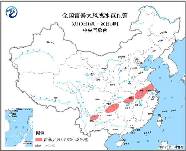 這次降雨過程中,會(huì)有明顯的雷電天氣。從19日夜間開始,河南南部、江蘇、安徽東北部、湖北北部、湖南西北部和貴州北部等地將先后出現(xiàn)雷電、短時(shí)強(qiáng)降水、雷暴大風(fēng)和冰雹等強(qiáng)對流天氣。19日10時(shí),中央氣象臺發(fā)布了強(qiáng)對流天氣藍(lán)色預(yù)警。