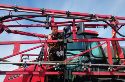 3月7日,黑龍江省孫吳縣樺林現(xiàn)代農(nóng)機專業(yè)合作社理事長吳德顯正在檢修大型噴藥機 王建攝/本刊