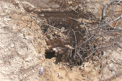 2014年夏季的一個(gè)雨夜過后,當(dāng)?shù)卮迕癜l(fā)現(xiàn)寶頂周圍一片狼藉,地里的蔬菜被踩得東倒西歪,雜亂的腳印徑直通向?qū)氻敚瑢氻斍暗哪嗤烈灰怪g變得新鮮松軟,像是被人松動(dòng)過。村民判斷,必定是有人在夜幕的掩護(hù)下,悄悄潛入小院對(duì)寶頂進(jìn)行盜挖,而后回填是為掩人耳目。這伙人挖了多深、挖到了什么則不得而知。此后,村民在澆地時(shí),盜挖處出現(xiàn)沉降,并隱約露出一個(gè)盜洞口。