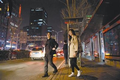 3月26日晚上9時(shí),加完班的任宇佳等公交車(chē)回家。