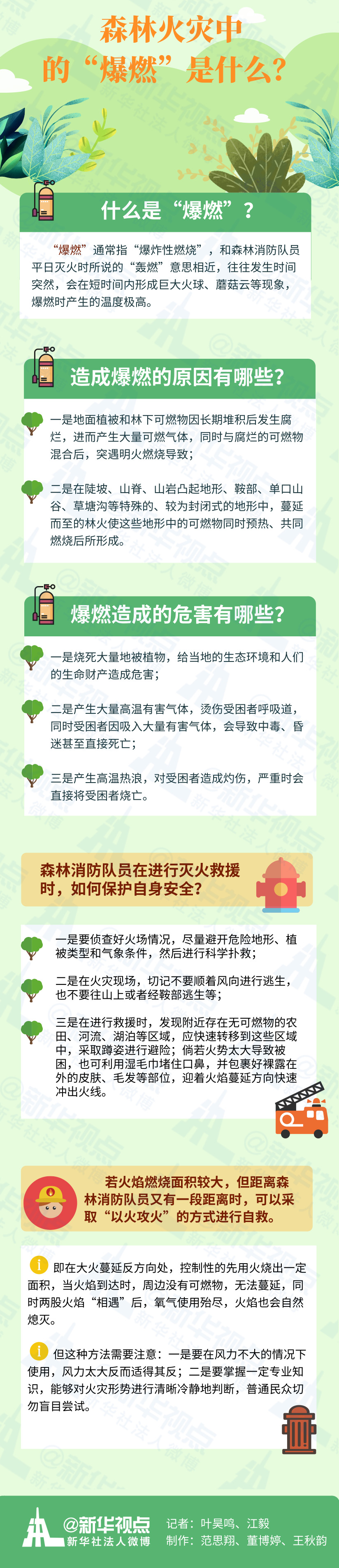 什么是“爆燃”?中國森林消防學科帶頭人白夜說:“‘爆燃’ 通常指‘爆炸性燃燒’,和森林消防隊員平日滅火時所說的‘轟燃’意思相近,往往發(fā)生時間突然,會在短時間內形成巨大火球、蘑菇云等現(xiàn)象,爆燃時產生的溫度極高?!?/p>