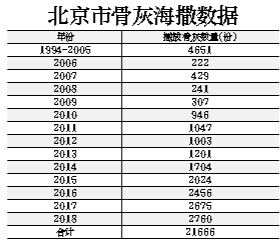 目前,以骨灰海葬、骨灰自然葬為代表的節(jié)地生態(tài)葬式已成為北京市骨灰安葬的主流。本市骨灰海葬活動(dòng)自1994年實(shí)施以來(lái),迄今已順利組織了485次,播撒骨灰21666份,服務(wù)逝者家屬67887人次,僅2018年就組織骨灰撒海活動(dòng)70批次,播撒骨灰2760份,參加活動(dòng)家屬11160人,在全國(guó)居于領(lǐng)先地位?!笆濉蹦?,骨灰海葬量預(yù)計(jì)將達(dá)到北京市年火化總量的4%。