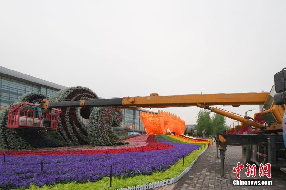4月18日晚,北京奧林匹克公園內的“絲路金橋”主題景觀點亮燈光,附屬的花壇景觀正在緊張施工。“絲路金橋”由中國藝術家舒勇創(chuàng)作,長28米、高6米、寬4米,是以“一帶一路”倡議為語境的大型藝術作品,此次作為第二屆“一帶一路”國際合作高峰論壇的主題花壇亮相。中新社記者 賈天勇 攝