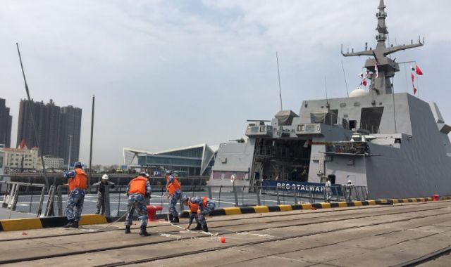 新華社青島4月19日電(記者趙新兵、梅世雄)4月19日10時(shí)許,新加坡海軍“堅(jiān)強(qiáng)”號(hào)護(hù)衛(wèi)艦緩緩駛?cè)肭鄭u大港碼頭。這是參加中國(guó)人民解放軍海軍成立70周年多國(guó)海軍活動(dòng)到訪的第一艘外國(guó)海軍艦艇。