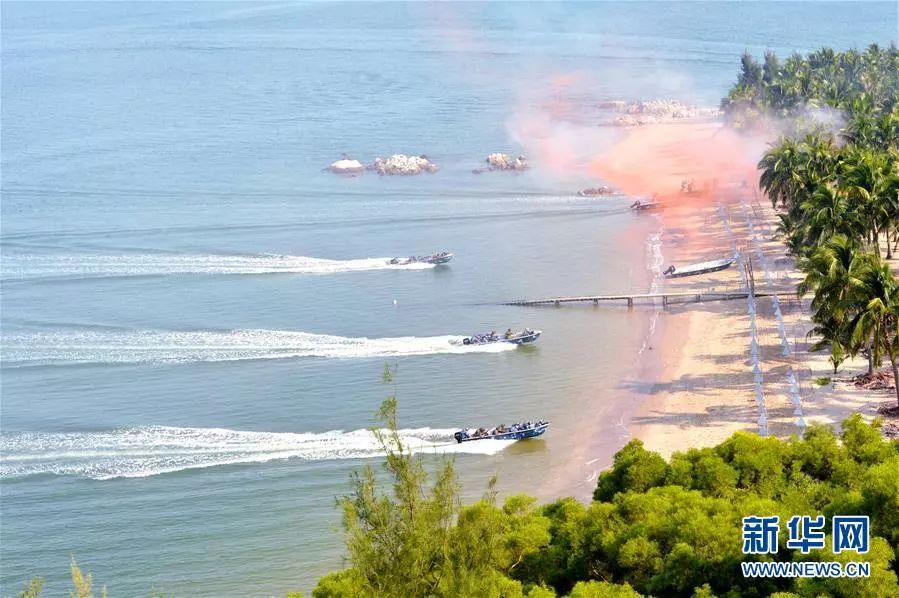 2016年9月18日,中俄“海上聯(lián)合-2016”演習舉行立體奪控島礁演練。這是陸戰(zhàn)隊員乘舟沖上灘頭。新華社發(fā)(孫宏韜 攝)