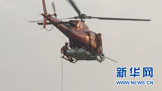 直升機(jī)到達(dá)傷者受困地點,下降至距離傷者所在地面50米的位置開始懸停,消防員唐運德攜帶救援設(shè)備,依靠一根繩索,進(jìn)行了垂直速降。