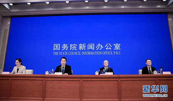 4月28日,國務(wù)院新聞辦公室在北京舉行新聞發(fā)布會,請國家知識產(chǎn)權(quán)局局長申長雨、國家知識產(chǎn)權(quán)局副局長趙剛、中宣部版權(quán)管理局局長于慈珂介紹2018年中國知識產(chǎn)權(quán)發(fā)展?fàn)顩r,并答記者問。新華社記者 潘旭 攝