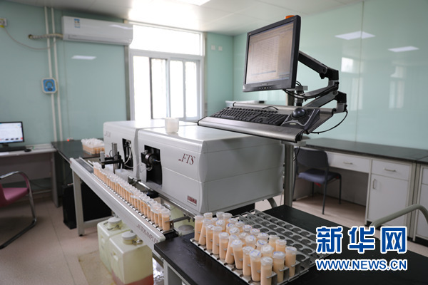 在辦公室簡單的交談后,叢慧敏帶記者來到旁邊的一棟辦公樓,門口的工作人員正在從手推車上卸下裝滿了橙色乳狀液體的試管,這也就是叢慧敏的另一項工作——對奶牛產(chǎn)下的牛奶進行化驗分析。除了找到好牛,還得讓牛吃上好料,“跟人一樣,我們也會根據(jù)牛的身體狀況合理搭配飲食,目標就是保證奶質(zhì)好。”每個月首農(nóng)北京奶牛中心都要檢測約8萬份奶樣,對這些來自全國各地的奶質(zhì)進行分析,通過數(shù)據(jù)對比得出結果,再將結果反饋給牧場,指導牧場飼養(yǎng)過程中需要改進的問題?!芭e個例子,某牧場樣本中,我們檢測發(fā)現(xiàn)乳脂低了,那么牛的食物里可能是吃的草少了,就需要我們減少某類飼料的分量,增加草的比重?!?/p>