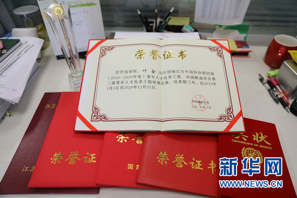 圖為葉金所獲榮譽(yù)證書。 新華網(wǎng)汪亞/攝