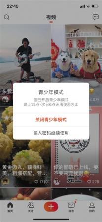 4月24日凌晨,記者登錄快手短視頻平臺發(fā)現(xiàn),確實(shí)因?yàn)椤胺莱撩浴逼陂g無法登錄平臺,需要監(jiān)護(hù)人輸入密碼后才能繼續(xù)使用。記者隨即以“青少年”模式登錄抖音、火山時,同樣顯示無法登錄。