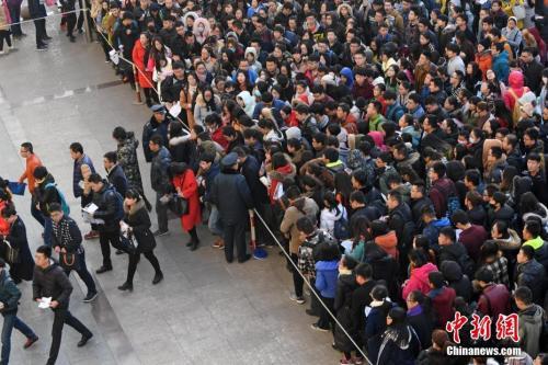 資料圖:山西太原一公務(wù)員考點(diǎn),考生排隊(duì)準(zhǔn)備進(jìn)入考場(chǎng)。武俊杰 攝
