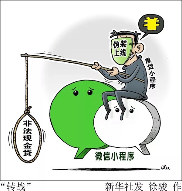 ——“套路貸”等違規(guī)App的“中轉(zhuǎn)站”。在多個互聯(lián)網(wǎng)公司的小程序中搜索“貸款”二字,填寫相關(guān)職業(yè)、家庭、財產(chǎn)等信息后,半月談記者收到了營銷人員的微信或QQ號,添加后發(fā)現(xiàn)對方推薦的貸款工具實為“套路貸”。同時一些用戶反映,有的小程序成涉黃、涉賭的“中轉(zhuǎn)站”,通過小程序吸引人加入指定聊天群后,接下來的就是色情交易、賭博活動等。
