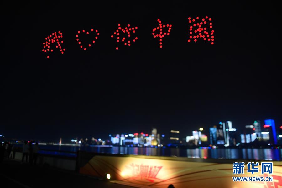 5月20日,約150架無(wú)人機(jī)空中編隊(duì)在錢(qián)塘江上空組成“我愛(ài)你中國(guó)”字樣。 當(dāng)晚,在浙江杭州錢(qián)塘江畔,城市燈光秀和約150架無(wú)人機(jī)組成的空中編隊(duì)表演交相輝映。“520中國(guó)”“我愛(ài)你中國(guó)”“70年”……對(duì)祖國(guó)進(jìn)行的一場(chǎng)“深情告白”閃耀錢(qián)塘兩岸。 新華社記者黃宗治攝