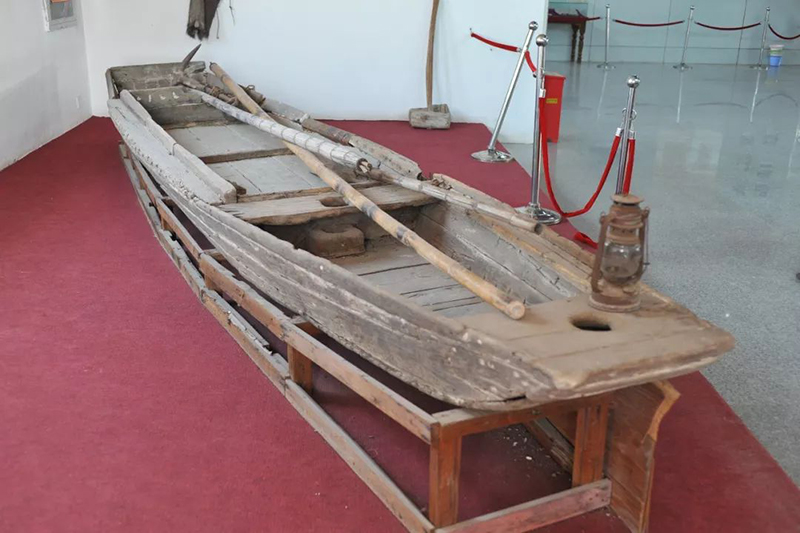 中央紅軍渡過于都河時(shí)所用的馬燈、門板、渡船等物。新華社記者 高皓亮 攝