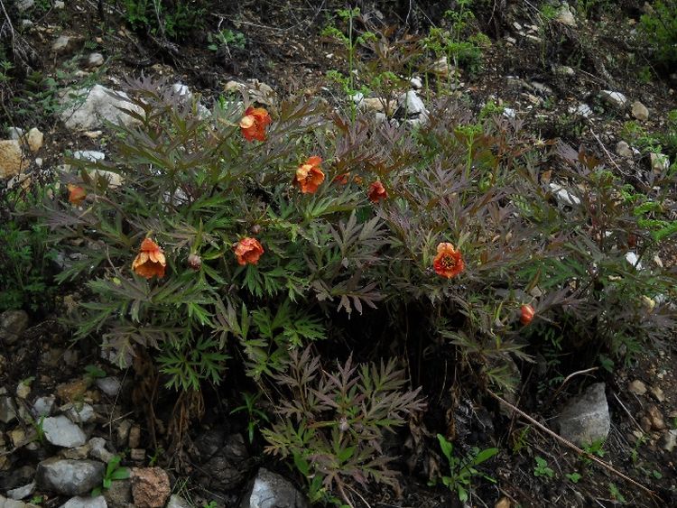 生長(zhǎng)在云南香格里拉山坡石縫中的野生牡丹。圖片由中國(guó)農(nóng)科院供圖