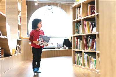 繪本圖書館里,孩子坐在家長身旁,捧著手中的書讀得津津有味。場館設(shè)計(jì)之初,王慧瑾親自“操刀”,定下了原木簡約風(fēng)格的主基調(diào),就是為了滿足家長的高品質(zhì)審美需求,力圖打造一個(gè)家長和孩子都可以樂在其中的悠閑天地。
