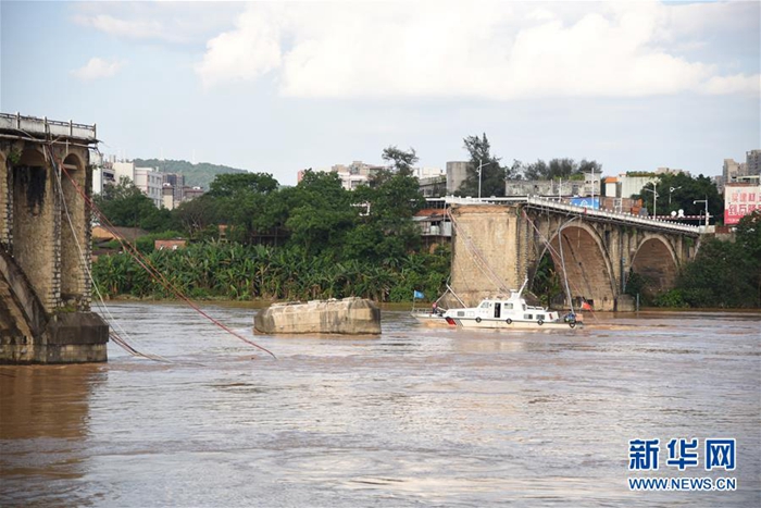 6月14日,從空中俯瞰垮塌的河源東江大橋(無人機(jī)拍攝)。新華社記者 王瑞平 攝
