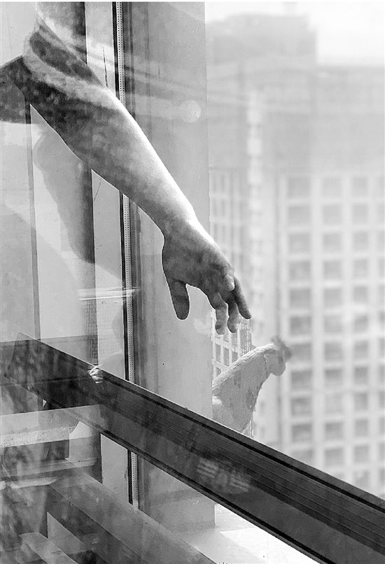 記者觀察了一下,玻璃幕墻外的橫梁其實(shí)并不寬,大約20厘米,最窄處只有10厘米。物業(yè)很擔(dān)心,“這么高的地方,無論是對業(yè)主,還是對這只雞來說,都不安全?!碑?dāng)時(shí),他們就考慮怎么把雞給救下來。