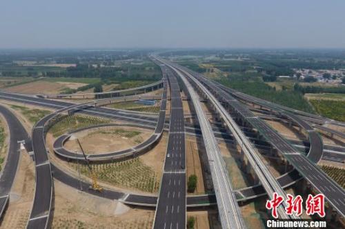 北京大興國際機場重要配套保障工程——北京大興機場高速公路和北京大興機場北線高速公路中段工程將于2019年6月底建成,并具備通車條件?!≈行律缬浾?崔楠 攝