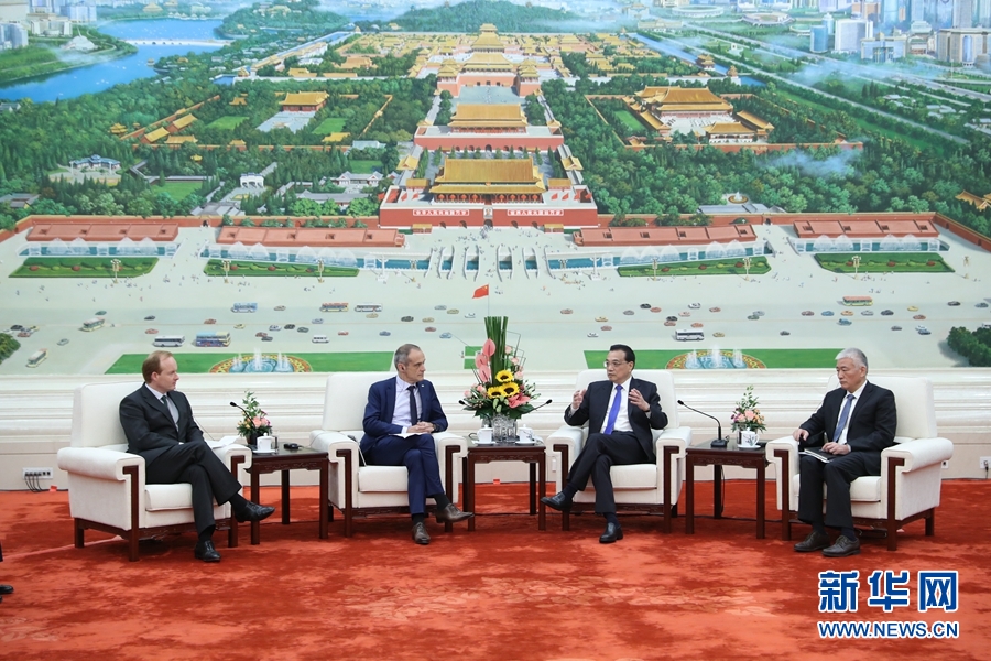 6月20日,國(guó)務(wù)院總理李克強(qiáng)在北京人民大會(huì)堂會(huì)見來(lái)華出席“全球首席執(zhí)行官委員會(huì)”第七屆圓桌峰會(huì)的知名跨國(guó)公司負(fù)責(zé)人,并同他們座談。 新華社記者丁林?jǐn)z