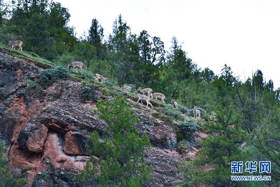 這是在青海省玉樹藏族自治州雜多縣昂賽鄉(xiāng)境內(nèi)拍攝的一群巖羊(6月21日攝)。新華社記者 張龍 攝