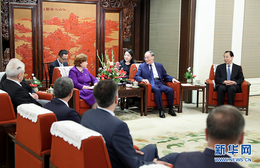6月25日,國(guó)家副主席王岐山在北京中南海紫光閣集體會(huì)見出席巴庫國(guó)際論壇北京高級(jí)別會(huì)議的外方代表。 新華社記者 丁海濤 攝