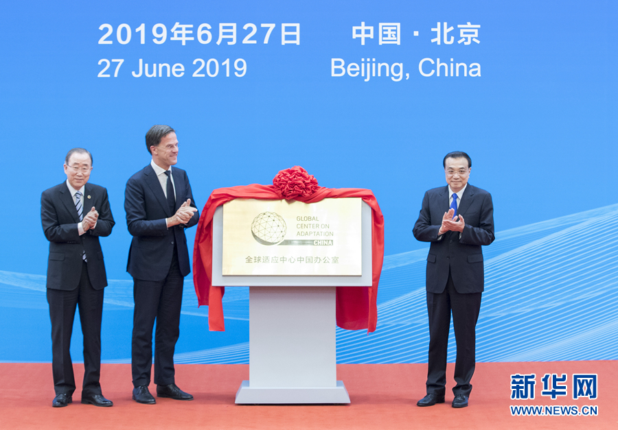 6月27日,國務院總理李克強在北京人民大會堂同荷蘭首相呂特、聯(lián)合國前秘書長潘基文共同出席全球適應中心中國辦公室揭牌儀式。新華社記者 王曄 攝
