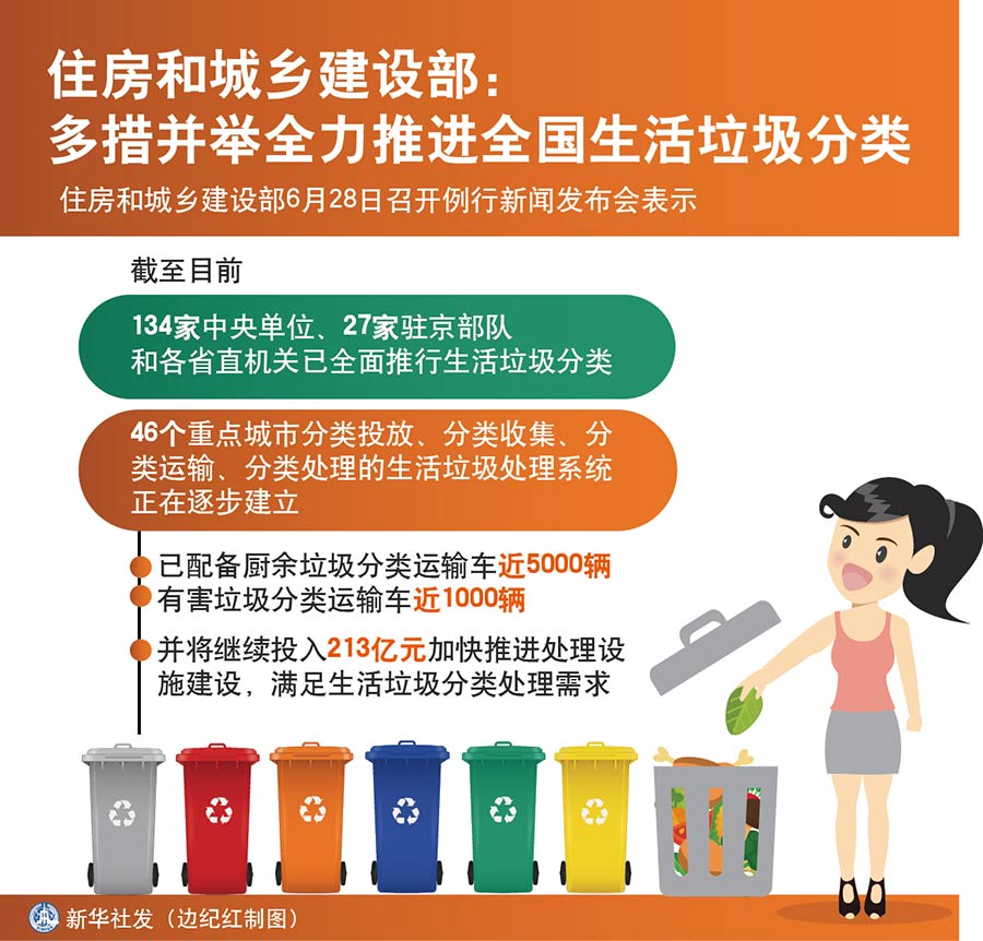 新華社北京6月28日電(記者王優(yōu)玲)住房和城鄉(xiāng)建設(shè)部28日召開(kāi)例行新聞發(fā)布會(huì)表示,下一步將繼續(xù)會(huì)同有關(guān)部門(mén)多措并舉全力推進(jìn)生活垃圾分類(lèi)工作。