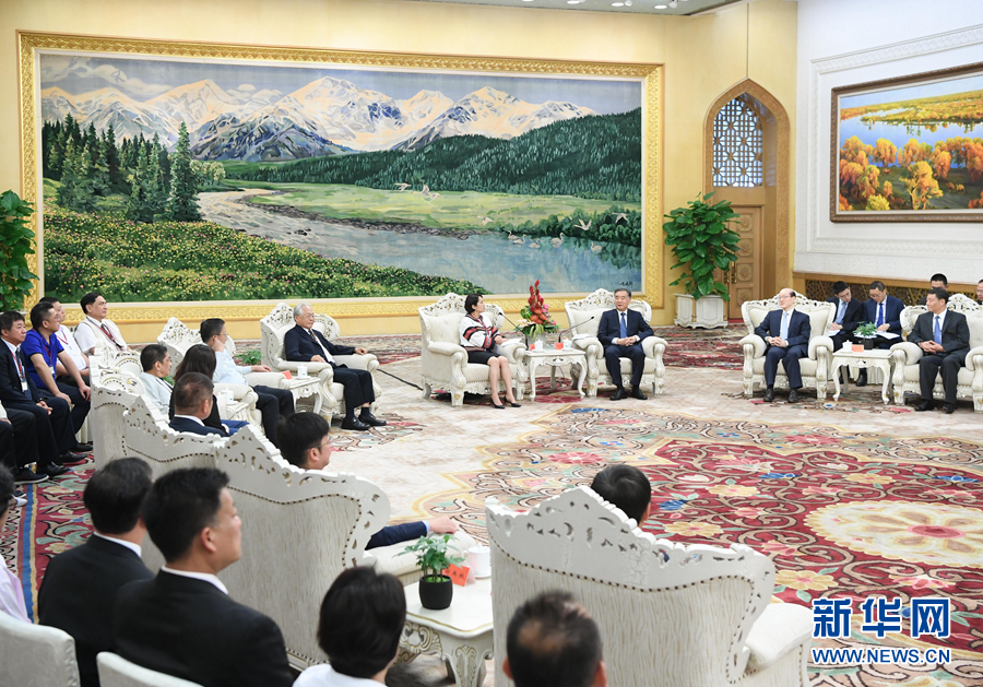 6月28日,中共中央政治局常委、全國(guó)政協(xié)主席汪洋在北京會(huì)見(jiàn)臺(tái)灣兩岸和平發(fā)展論壇榮譽(yù)顧問(wèn)高金素梅率領(lǐng)的臺(tái)灣民意代表和少數(shù)民族參訪團(tuán)。 新華社記者 申宏 攝
