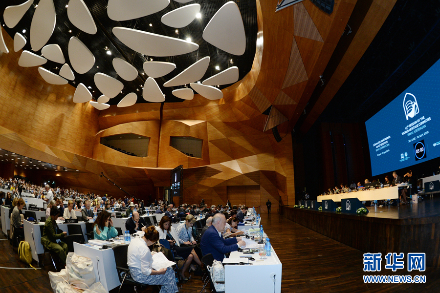 這是7月5日在阿塞拜疆巴庫拍攝的世界遺產(chǎn)大會(huì)現(xiàn)場(chǎng)。 新華社發(fā)(巴巴耶夫 攝)