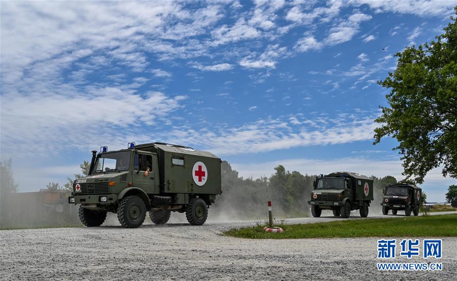 這是7月5日在德國費(fèi)爾德基興訓(xùn)練基地拍攝的中德“聯(lián)合救援-2019”衛(wèi)勤實(shí)兵聯(lián)合演習(xí)整合訓(xùn)練現(xiàn)場(chǎng)。新華社記者 連振 攝