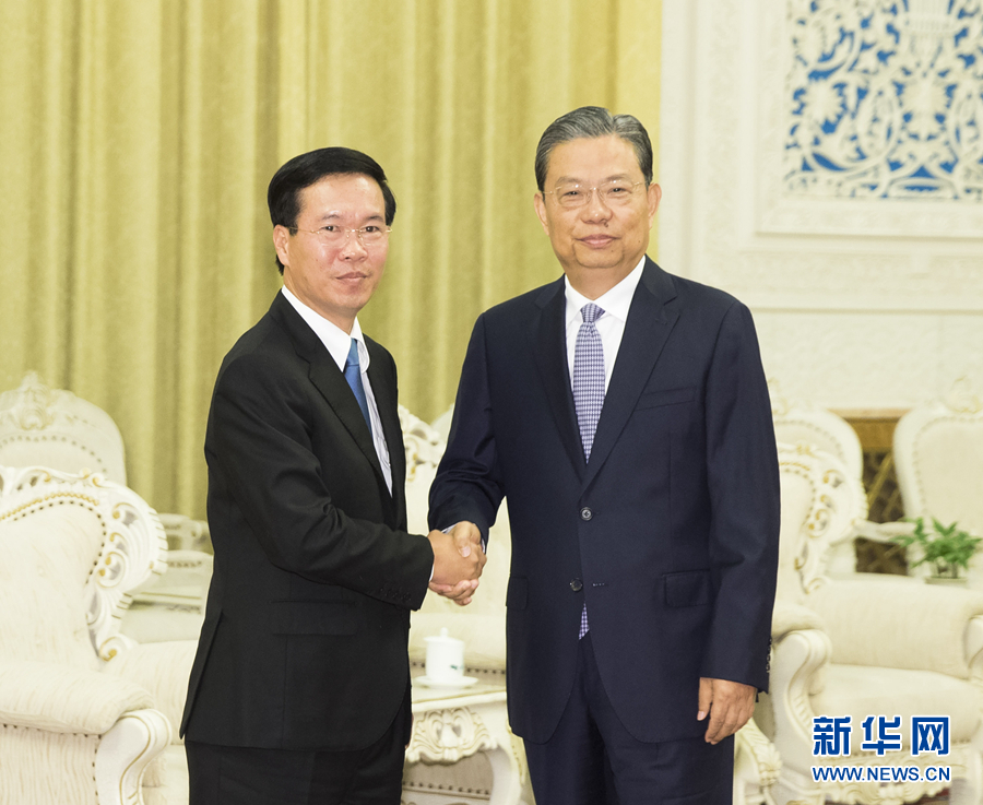 7月19日,中共中央政治局常委、中央紀委書記趙樂際在北京會見由中央政治局委員、中央書記處書記、中央宣教部部長武文賞率領的越南共產(chǎn)黨代表團。 新華社記者 黃敬文 攝