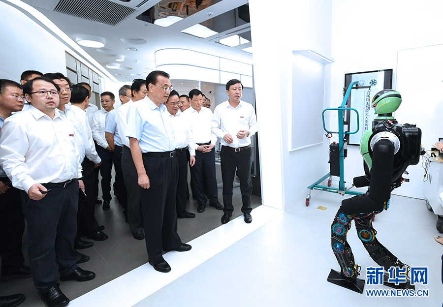 7月22日至23日,中共中央政治局常委、國(guó)務(wù)院總理李克強(qiáng)在上海考察。這是7月23日,李克強(qiáng)在上海張江人工智能島察看3D視覺(jué)遠(yuǎn)程醫(yī)療、智能神經(jīng)仿生、智能無(wú)人系列技術(shù)等創(chuàng)新成果。 新華社記者 饒愛(ài)民 攝