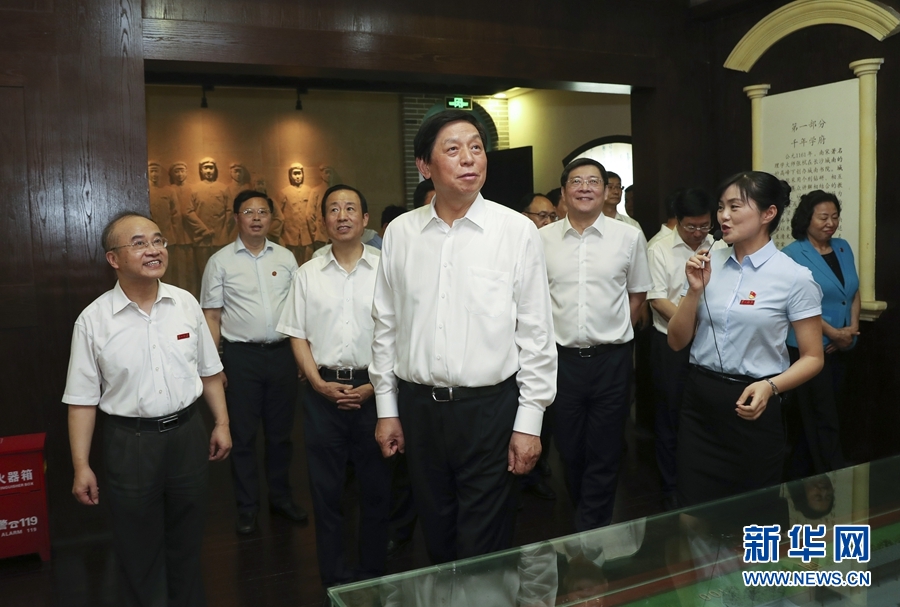 7月23日至25日,中共中央政治局常委、全國(guó)人大常委會(huì)委員長(zhǎng)栗戰(zhàn)書在湖南調(diào)研。這是7月23日,栗戰(zhàn)書來(lái)到湖南省立第一師范學(xué)校舊址,重溫毛澤東等老一輩革命家在這里學(xué)習(xí)、工作和從事革命活動(dòng)的經(jīng)歷。 新華社記者 姚大偉 攝