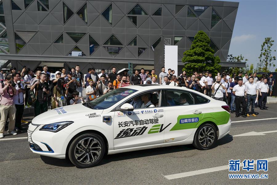 國內(nèi)首個5G自動駕駛公共服務(wù)平臺暨5G自動駕駛開放道路場景示范運營基地在重慶投入使用。這是長安汽車的一臺L4級自動駕駛汽車在啟動儀式現(xiàn)場進行演示(2019年7月26日攝)。新華社記者 劉潺 攝
